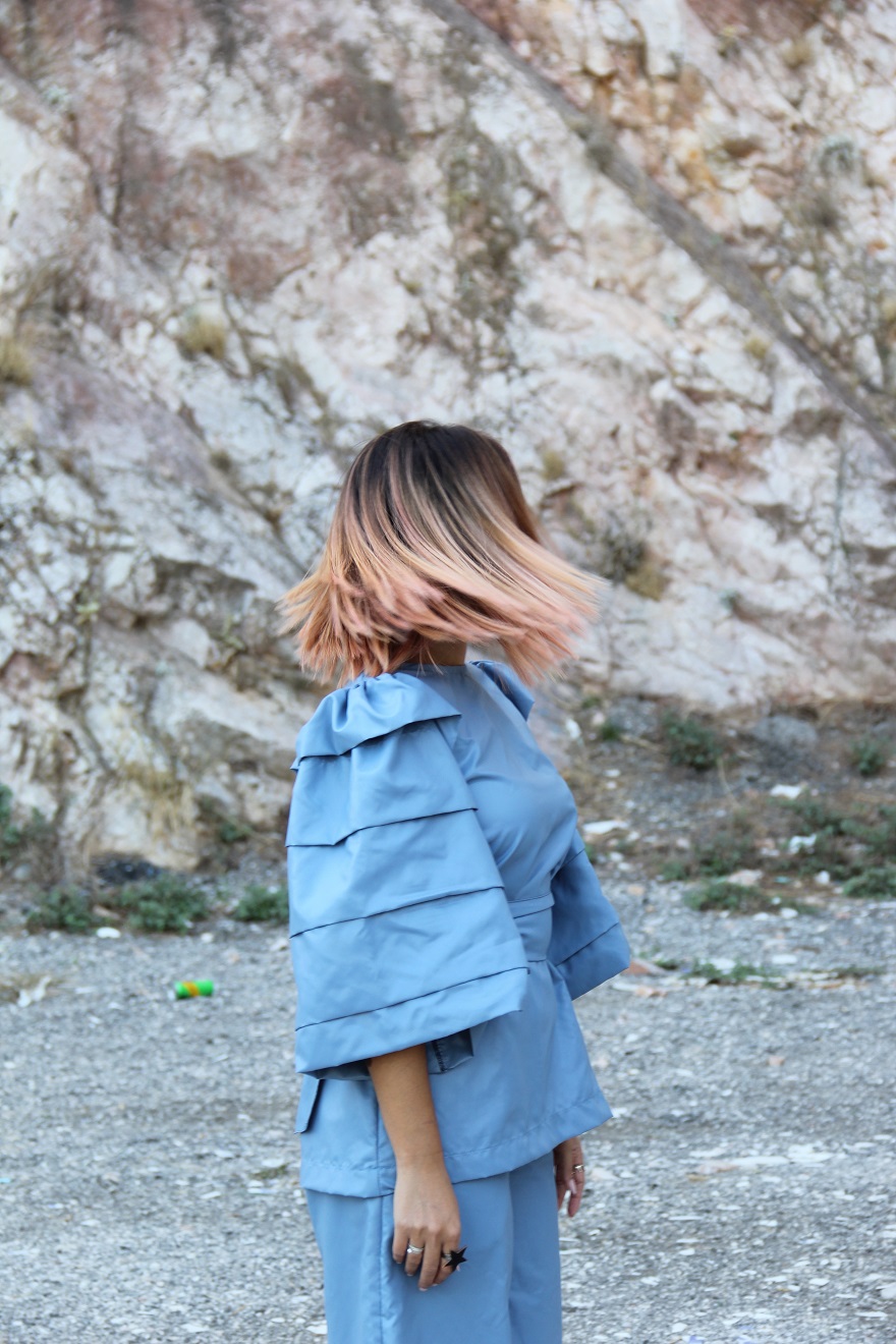 Κάθομαι στον υπέροχο χώρο του κομμωτηρίου της στο Κολωνάκι και μπροστά μου απλώνονται μπολάκια με χρώμα, σαν παλέτα ζωγράφου. Βλέπω την κίνηση με το ψαλίδι και νιώθω τα κορίτσια να με κοιτάνε με κομμένη ανάσα. "Gold but old" λέει η Δήμητρα κι εγώ αποχαιρετώ τα μακριά μου μαλλιά με μια κάποια... ανακούφιση -λες και διάβασε τη σκέψη μου. Στη συνέχεια φορώ τα ρούχα που η ίδια σχεδίασε (Lengo λέγεται το fashion brand της) και η έμπειρη makeup artist της ομάδας της αναλαμβάνει την φωτογένειά μου. Σειρά έχει η φωτογράφιση, η οποία ήταν απόλυτα διασκεδαστική αφού είχα την ευκαιρία να τη βιώσω και ως «μοντέλο» και ως δημοσιογράφος στα backstage -ταυτόχρονα.