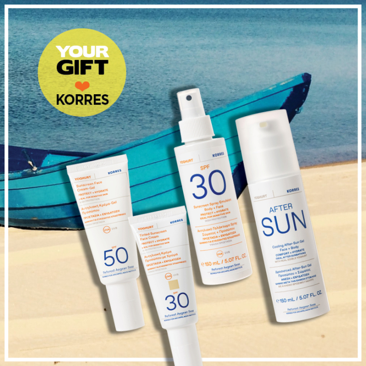 Ο αγαπημένος μας ήλιος έχει επιστρέψει ήδη και μας ετοιμάζει σταδιακά για το καλοκαίρι οδηγώντας μας να ονειρευόμαστε χρυσαφένιες αμμουδιές, γαλαζοπράσινα νερά και μια δροσερή αύρα που έχει άρωμα αντηλιακού. Για το τελευταίο έχει φροντίσει η KORRES με μια σειρά που έχει κεντρικό συστατικό το γιαούρτι και είναι φιλική τόσο για το δέρμα, όσο και για το περιβάλλον.