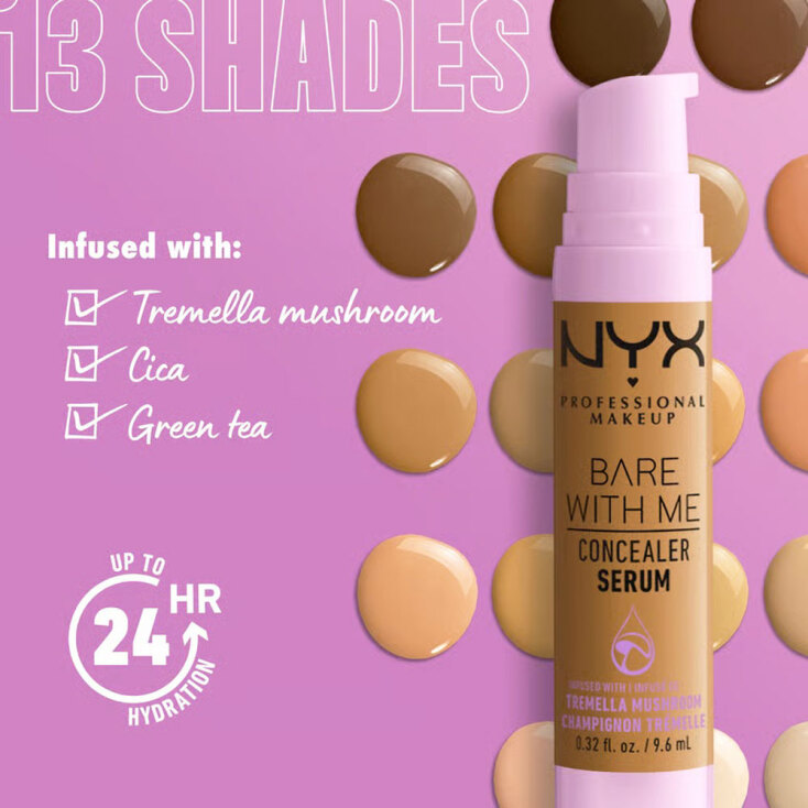 Πριν πιάσεις οποιοδήποτε άλλο προϊόν, βεβαιώσου ότι η βάση σου είναι σωστή. Το Bare With Me Concealer Serum της NYX Professional Makeup είναι η απόλυτη επιλογή αν θες ελαφριά, ενυδατική κάλυψη για έως και 24 ώρες, χωρίς να βαραίνει η επιδερμίδα σου. Με vegan σύνθεση, απλώνεται εύκολα και καλύπτει μαύρους κύκλους, κοκκινίλες ή ατέλειες με φυσικό τελείωμα. Μπορείς να το χρησιμοποιήσεις όχι μόνο κάτω από τα μάτια, αλλά και σε όλο το πρόσωπο για ένα πιο ομοιόμορφο look.