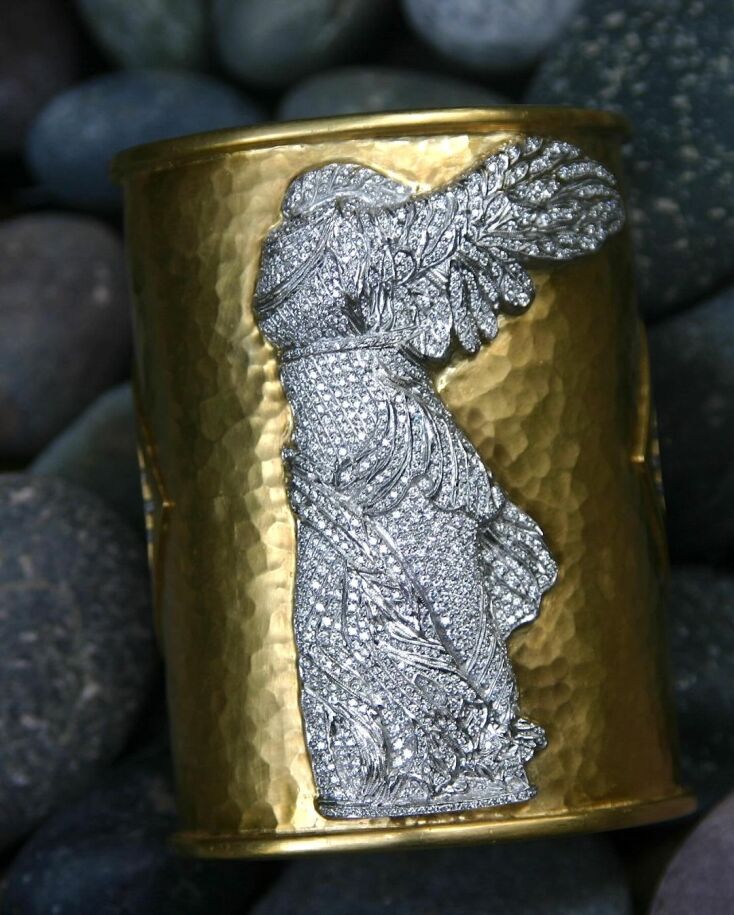 «Φοράω ένα χρυσό βραχιόλι με ένα διαμαντένιο αντίγραφο της Φτερωτής Νίκης της Σαμοθράκης. Το άγαλμα λατρεύτηκε σε ναό που χτίστηκε για εκείνη.