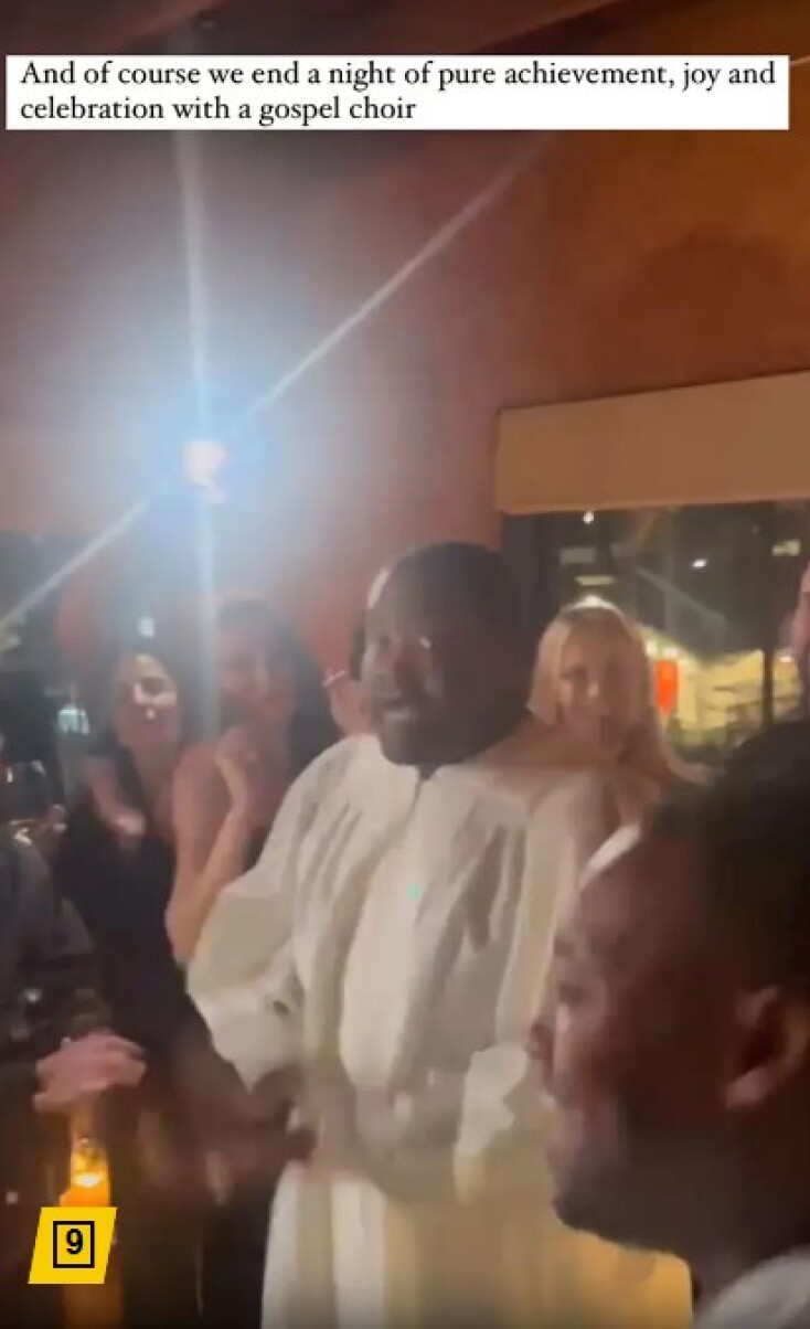 Η Μέγκαν Μαρκλ παρευρέθηκε στην εκδήλωση με τον κομμωτή Serge Normant και τον makeup artist Daniel Martin. Βιντεοσκοπήθηκε να χορεύει με τους φίλους της σε μια παράσταση χορωδίας gospel σε βίντεο ενός συναδέλφου της στο Instagram.