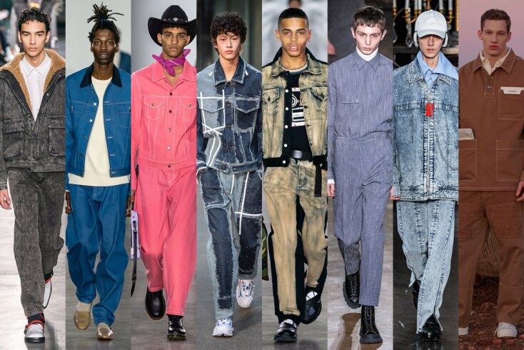 Υπάρχουν τα τζιν, τα τζιν μπουφάν, οι τζιν ζακέτες και μετά υπάρχει το «ή όλα ή τίποτα». Γενικότερα τα κοστούμια έχουν δεχτεί απανωτά χτυπήματα τις τελευταίες σεζόν, μετά την άνοδο του σπορ λουκ και του athleisure, όμως φαίνεται πως αποφάσισαν να κάνουν ένα δυναμικό comeback το 2019-2020, απλώς όχι με τον τρόπο που περιμέναμε. Έτσι λοιπόν είδαμε τα πάντα, από oversized denim μπουφάν και ασορτί φαρδιά τζιν στην πασαρέλα των Liam Hodges και E Tautz, μέχρι και πιο κομψές εμφανίσεις που θυμίζουν δεκαετία του '60 σε άλλους μεγάλους οίκους. Προσωπικό αγαπημένο το ροζ σύνολο του Bobby Abley. Περιμένω τον Harry Styles να το φορέσει από στιγμή σε στιγμή.