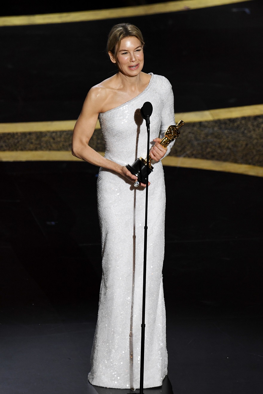 H Renée Zellweger ήταν από τις μεγάλες νικήτριες της βραδιάς, κερδίζοντας το αγαλματίδιο για την ερμηνεία της στην ταινία Judy. Εμφανίστηκε στην τελετή φορώντας ένα λιτό, κομψό φόρεμα του οίκου Armani, το οποίο συμπλήρωσε με ένα άκρως εντυπωσιακό David Webb δαχτυλίδι.