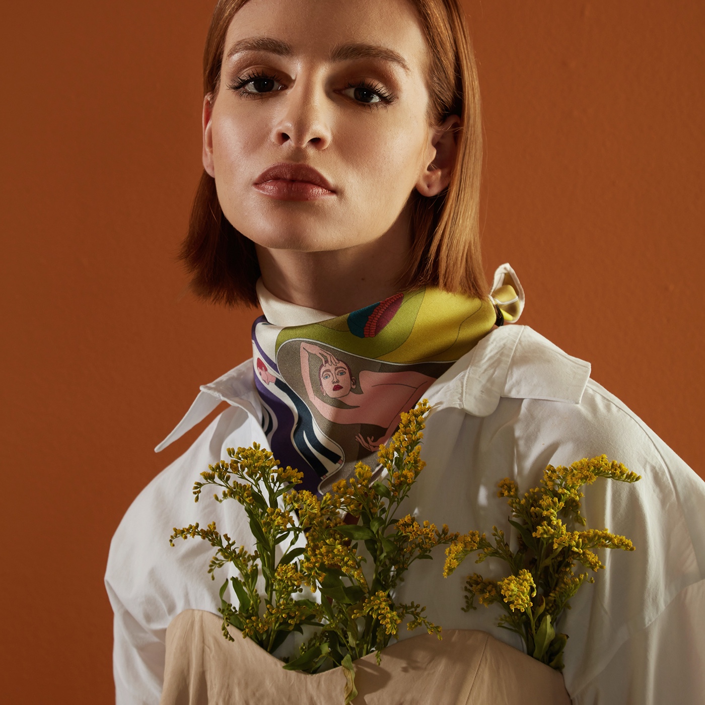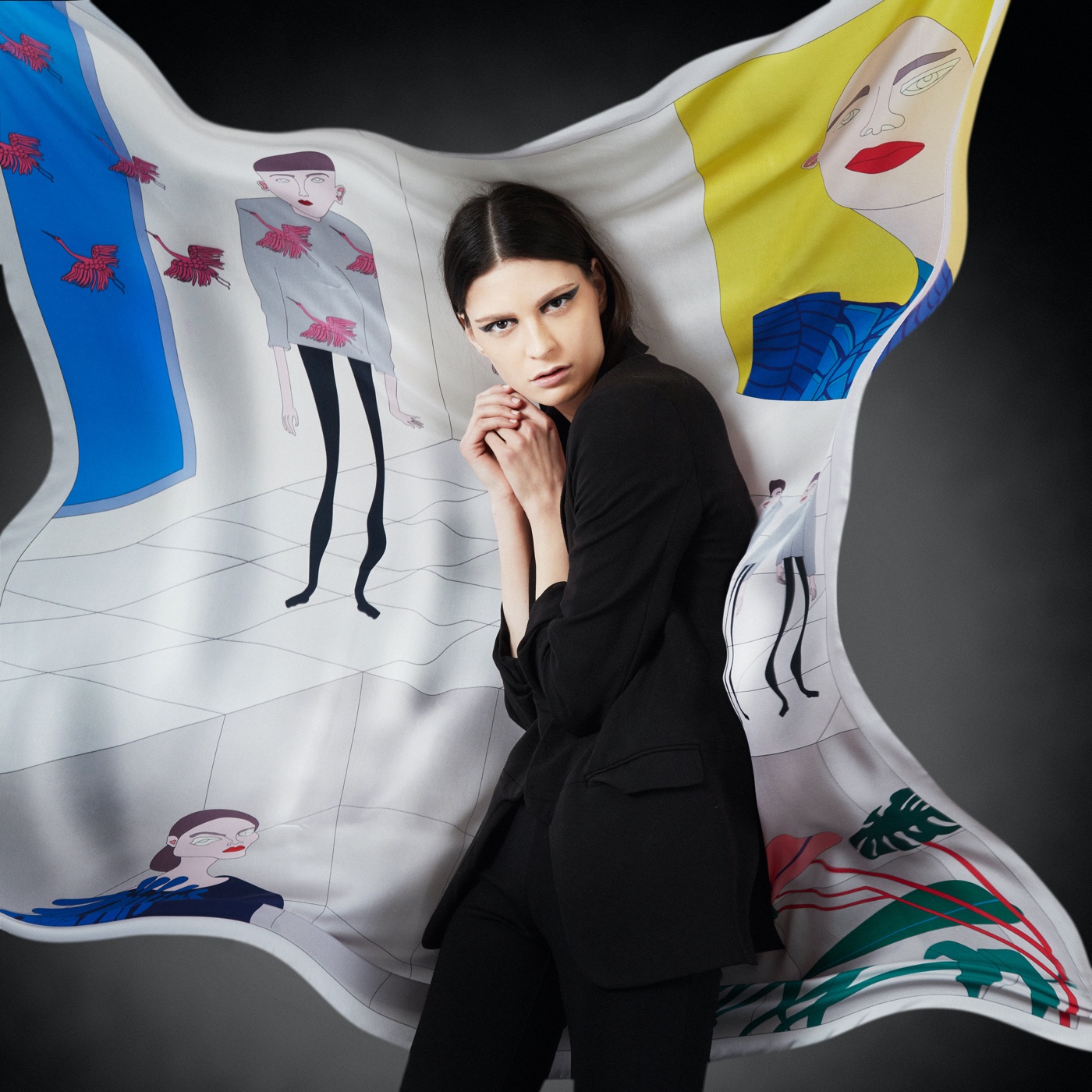 Σχέδια κλασικά, αλλά παράλληλα πρωτότυπα. Ζωγραφικοί πίνακες με επίκεντρο τον άνθρωπο, συνθέτουν τη φιλοσοφία του brand και κάνουν τα μαντήλια να διαφέρουν, μεταφέροντας το καθένα μια δική του αφήγηση, την οποία ο παρατηρητής ερμηνεύει σύμφωνα με τα δικά του βιώματα. Συγχρόνως, κρύβουν και μια ιστορία της δημιουργού. «Προσπαθώ ακόμα να καταλάβω τι συμβαίνει στο μεταξύ μας, στην απόστασή μας, στα πρέπει, τα θέλω. Να μου δώσω λύσεις στα αναπάντητα ερωτήματα μου. Μ’ ενδιαφέρουν αρκετά οι άνθρωποι, τους κουβαλάω πάντα στη ζωή μου, τους βάζω στα σχέδια μου. Θέλω να αντανακλά το συναίσθημα και τον προβληματισμό, να υπάρχει το παρακάτω». Άλλωστε, όπως τονίζει: «Για κάποιον μπορεί να σημαίνει ότι απλά βάζουμε χρώματα στο λαιμό, ενώ για μένα το κάθε μαντήλι, κρύβει ένα συναίσθημα. Αυτό ίσως να μην φαίνεται με την πρώτη ματιά, αλλά σε δεύτερη ανάγνωση, τα κομμάτια ενώνονται».