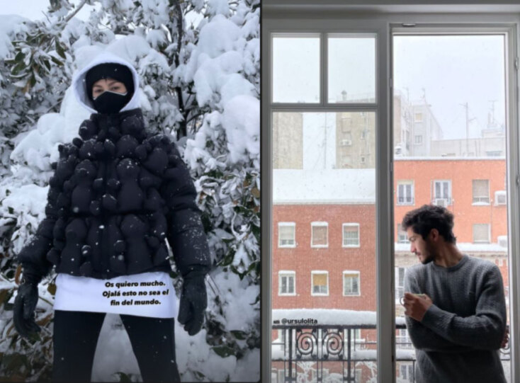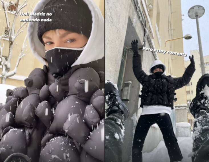 Η «Τόκιο» από το «La Casa de Papel», φορώντας ένα φουσκωτό μπουφάν, έπαιξε στο χιόνι με τον σύντροφό της σε διάλειμμα από τα γυρίσματα στη Μαδρίτη.
