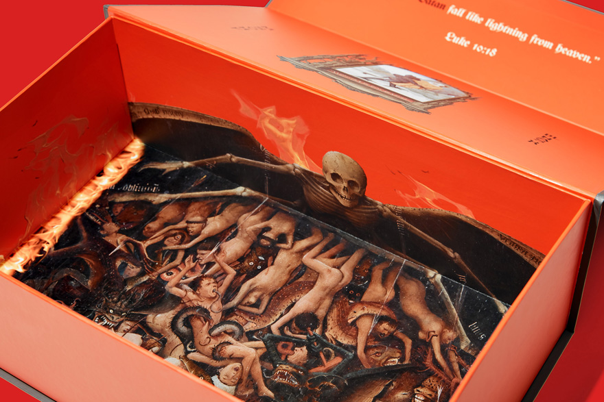 Τι έκαναν τώρα τα στελέχη της εταιρίας με έδρα το Μπρούκλιν; Ανάμειξαν μια σταγόνα αίμα με μελάνι και γέμισαν με αυτό μια air bubble στο σνίκερ Nike Air Max 97. Έξι υπάλληλοι έδωσαν το αίμα τους. Αυτή η θυσία τους, έστω και μικρή, εκτίναξε την τιμή πώλησης του παπουτσιού στα 1018 δολάρια. Για να είναι ολοκληρωμένη η σατανική όψη των παπουτσιών, πάνω από τη γλώσσα του αθλητικού είναι στερεωμένο ένα χρυσό τσαρμ σε σχήμα πεντάλφας. Και για να δέσει το σατανικό γλυκό τυπώθηκε και ένας στίχος που μιλάει για τον πεπτωκότα άγγελο.