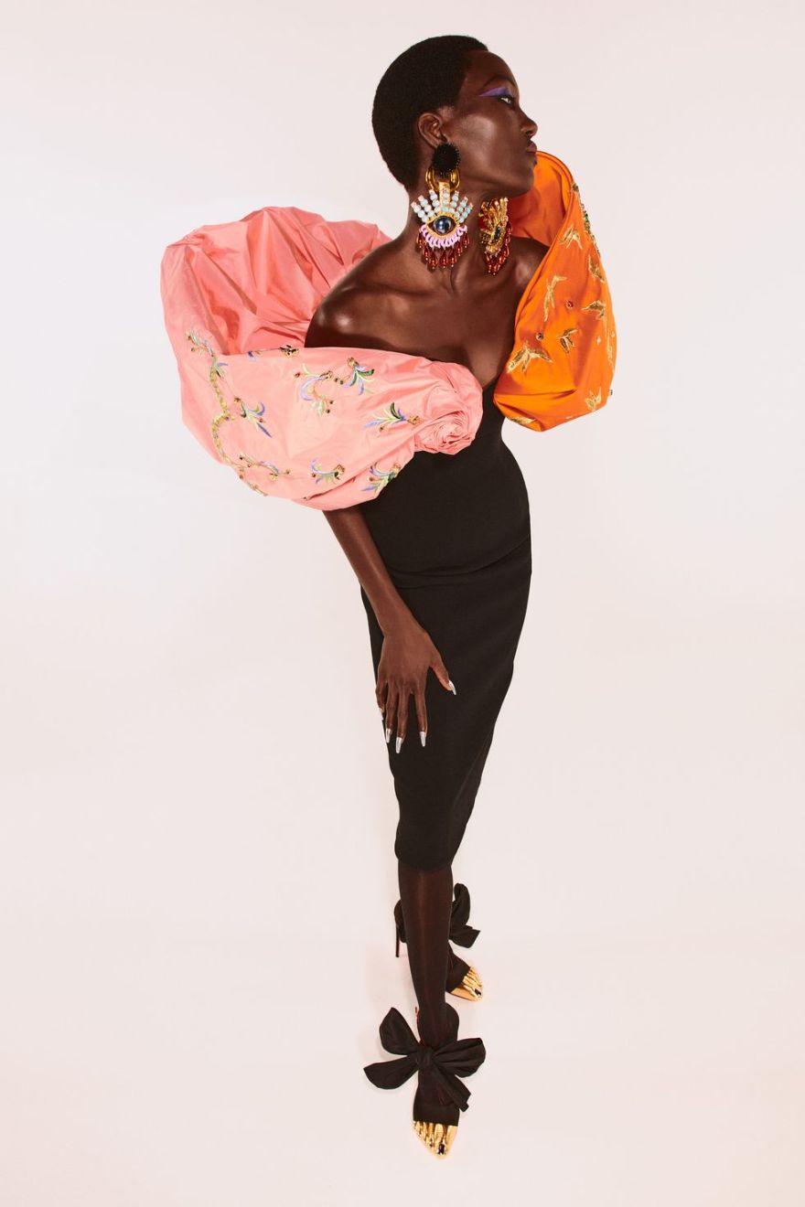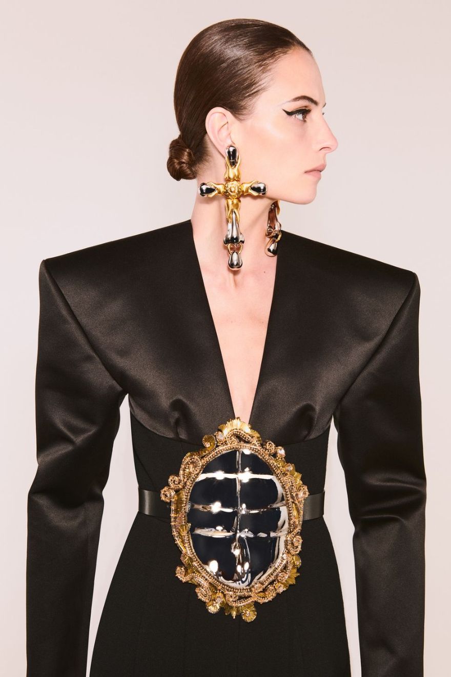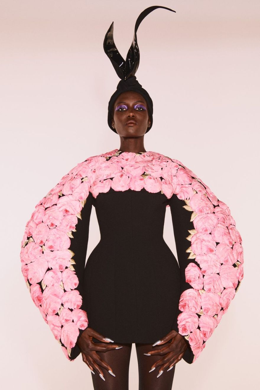 Χορταστική, θηλυκή, αισθησιακή και απενοχοποιημένη, η συλλογή άνοιξε την όρεξη για μια Εβδομάδα που θα κερδίσει η χειροποίητη δημιουργικότητα, η έμπνευση και η αισιοδοξία. Είμαστε επιζήσαντες μιας πανδημίας. Γι’ αυτό και στη μέση της Συλλογής, ένα μαύρο φόρεμα με ώμους balloon κι ένα κόσμημα αποκρυσταλλώνει (ή μάλλον επιχρυσώνει) την κομμένη μας ανάσα: ένα κολιέ που μοιάζει με ρίζες δέντρου όμως είναι πνεύμονες που μας υπενθυμίζουν τη χαρά της ζωής. Τολμηρός και ταλαντούχος ο Ρόζμπερι, καταφέρνει να βάζει πινελιές από την παρακαταθήκη της Schiaparelli χωρίς όμως τα ρούχα να μοιάζουν με κοστούμια ούτε όμως και με εκείνων που αντέγραψαν τη σουρεαλιστική ματιά της.