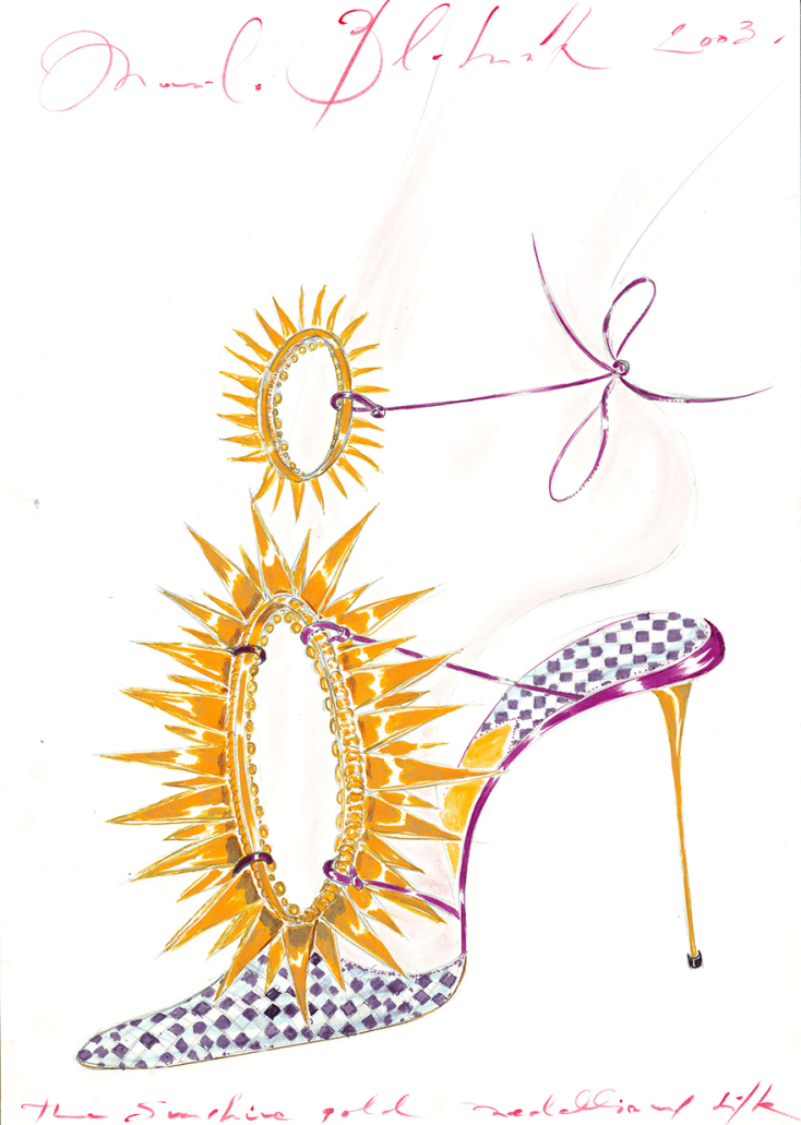 Ο διάσημος σχεδιαστής παπουτσιών των σταρ, Manolo Blahnik, συμπληρώνει 50 χρόνια καριέρας. Κάνουμε μια βόλτα στα γεμάτα χρώματα και φίνα ομορφιά σκίτσα του.