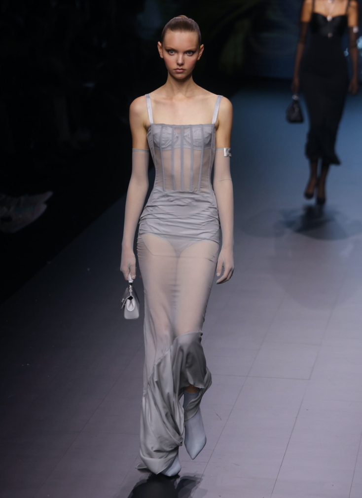 Αναμένοντας το καλοκαίρι, η μόδα μας ντύνει προκαταβολικά με τα ρούχα και τα αξεσουάρ του. Η αισθητική mermaidcore είναι μικρή εξέλιξη του resortwear και περιλαμβάνει ασορτί σετάκια, σουτιέν αντί για τοπάκια, διχτυωτά φορέματα, διαφάνειες, αλλά και παγιέτες σαν τα λέπια στο σώμα της γοργόνας. Γιατί δεν πας στο resort χωρίς κάτι λαμπερό.