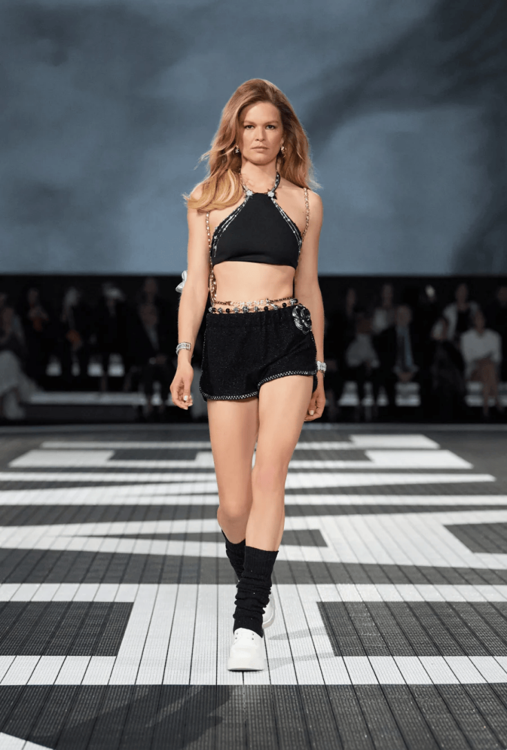 Ο Chanel απογείωσε τον ορισμό των body chain στην Cruise κολεξιόν του για το καλοκαίρι του 2023/ 24. Την επίδειξη άνοιξε ένα total black σύνολο με χρυσά και ασημί κοσμήματα που στόλιζαν το μοντέλο από το κεφάλι έως τη μέση. Το αποτέλεσμα ήταν μαγικό, καθώς συνδύασαν τη διαχρονικότητα του οίκου και μια πιο σύγχρονη και μοντέρνα προσέγγιση. Η αλησίδα του belly chain ήταν εμπνευσμένη από το κλασικό λουράκι των τσαντών Chanel, χρυσή με μαύρες δερμάτινες λεπτομέρειες. Το αστραφτερό λογότυπο του οίκου έκανε το σύνολο να ξεχωρίζει, πορσθέτοντας λάμψη και ένα πιο παιχνιδιάρικο ύφος.
