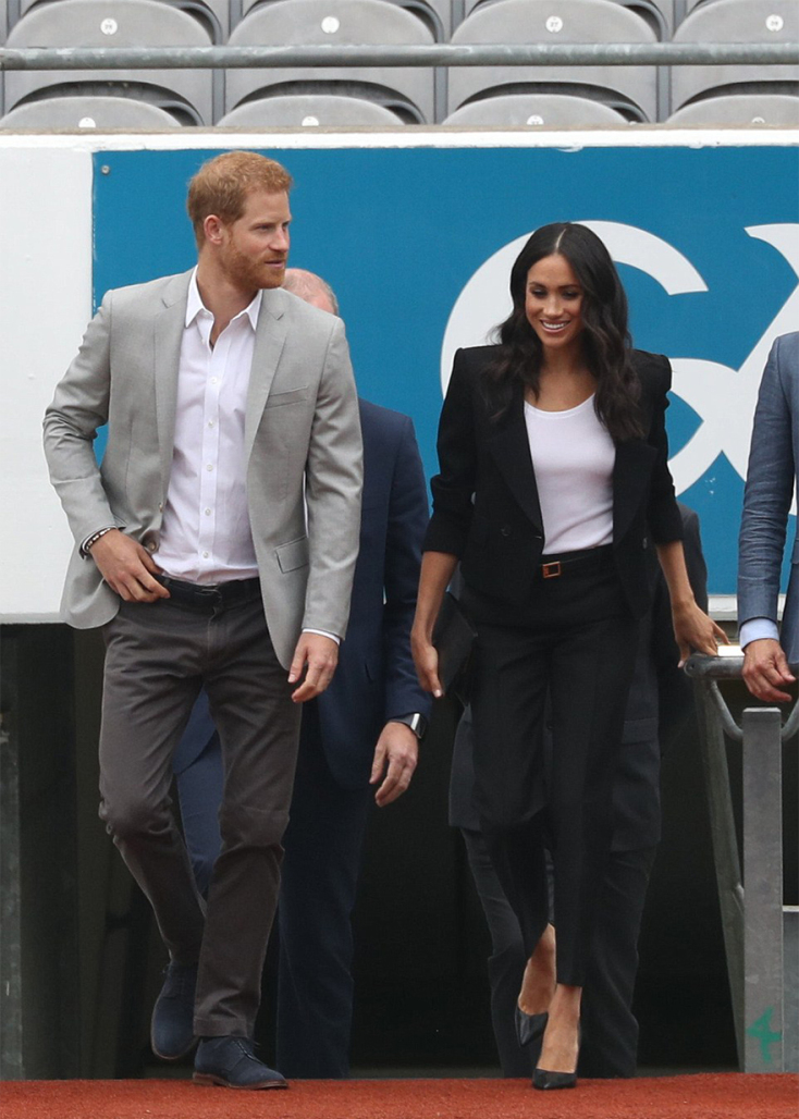 Την επόμενη ημέρα η πρώην ηθοποιός έκανε εμφάνιση με παντελόνι και σακάκι Givenchy στα 2.800 ευρώ. Η Μαρκλ είχε να φορέσει σακάκι και παντελόνι από τον γάμο με τον Χάρι. Η μαύρη ζώνη κάτω από το σακάκι έκανε μόνο 350 ευρώ.