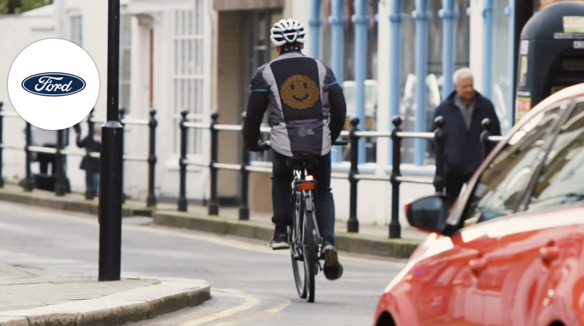 Ρούχα και παπούτσια με ανακλαστικές λεπτομέρειες, φώτα πορείας μπρος και πίσω, κράνη, ό,τι και να κάνουν οι ποδηλάτες δεν φαίνεται να είναι αρκετό. Κάπου εδώ επεμβαίνει λοιπόν η Ford με ένα μπουφάν ειδικά σχεδιασμένο για να βοηθάει την οπτική επικοινωνία με τους άλλους οδηγούς. Ως μέρος της "Share the Road" (Μοιράσου τον δρόμο) καμπάνιας της για να βελτιώσει την ασφάλεια των ποδηλατιστών, το ευρωπαϊκό τμήμα της εταιρείας δημιούργησε ένα μπουφάν με πάνελ από LED λαμπάκια στην πλάτη, το οποίο επικοινωνεί τις διαθέσεις και προθέσεις του ποδηλάτη. Ένα χαρούμενο ή λυπημένο emoji ανάλογα τη διάθεση, ένα θαυμαστικό σε περίπτωση που χρειάζεται να μειώσεις ταχύτητα ή να σταματήσεις, βέλη όταν θες να στρίψεις και πάει λέγοντας.
