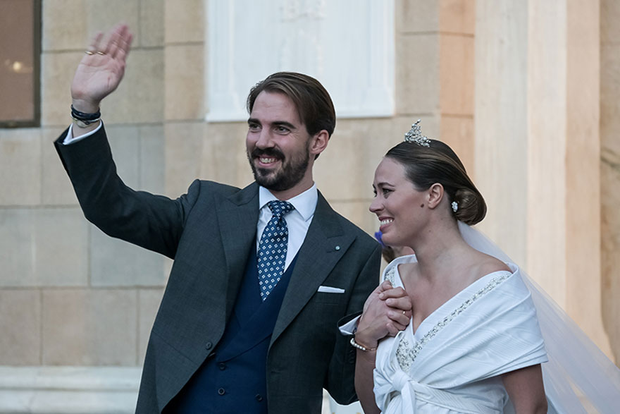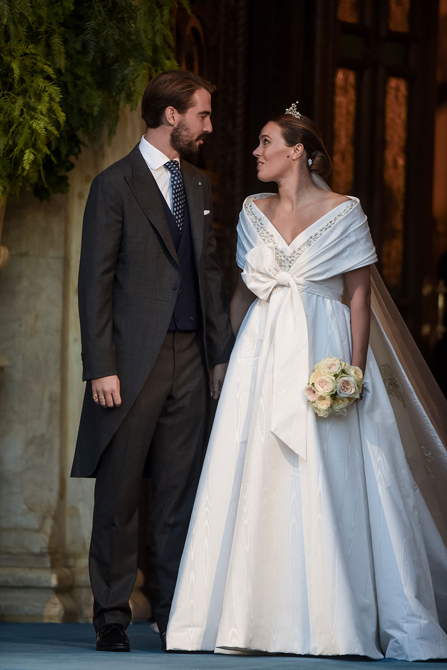 Αρκετός κόσμος είχε συγκεντρωθεί περιμετρικά της Μητρόπολης Αθηνών, προκειμένου να δει τον γαμπρό και τη νύφη. Το ενδιαφέρον για τον βασιλικό γάμο στην Αθήνα ήταν έντονο. Η Νίνα Φλορ έφτασε στην Μητρόπολη Αθηνών λίγο πριν από τις 17.30. Στο κεφάλι της είχε μια τιάρα, η οποία είναι οικογενειακό κειμήλιο της μητέρας του Φιλίππου. Πρόκειται για την Antique Corsage Tiara, που έχει δώσει η Άννα Μαρία, σύζυγος του τέως βασιλιά Κωνσταντίνου και στις δύο νύφες της, Μαρί Σαντάλ και Τατιάνα Μπλάτνικ, για την ημέρα του γάμου τους.