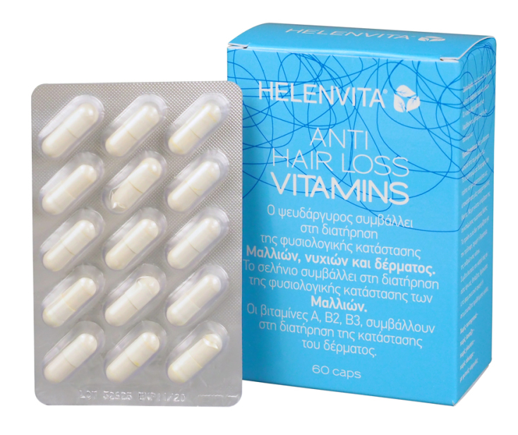 • Οι βιταμίνες Helenvita Anti-Hair Loss Vitamins περιέχουν τα απαραίτητα αμινοξέα, βιταμίνες και ιχνοστοιχεία που συμβάλλουν στη διατήρηση της φυσιολογικής κατάστασης των μαλλιών, των νυχιών και της επιδερμίδας. Η βιταμίνη Α που περιέχουν, συμβάλλει στη διατήρηση της φυσιολογικής κατάστασης της επιδερμίδας, ενώ η αντιοξειδωτική βιταμίνη Cβοηθά στον φυσιολογικό σχηματισμό του κολλαγόνου.
