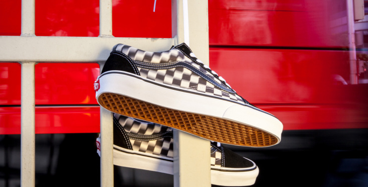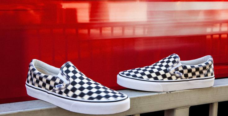 H Slip-On σκιακιέρα έχει γίνει συνώνυμο του "Off The Wall” state of mind της Vans από την πρώτη της εμφάνιση, το 1977. Το αγαπημένο μοτίβο έχει φορεθεί από surfers, skaters, BMX riders, καλλιτέχνες, μουσικούς και έχει οριστεί ως καμβάς δημιουργικής έκφρασης από τις τάσεις της μόδας. Για αυτή τη σεζόν, η Vans παρουσιάζει μια νέα προσέγγιση της κλασικής ασπρόμαυρης σκακιέρας με μια μίξη ενός «θολού» εφέ.