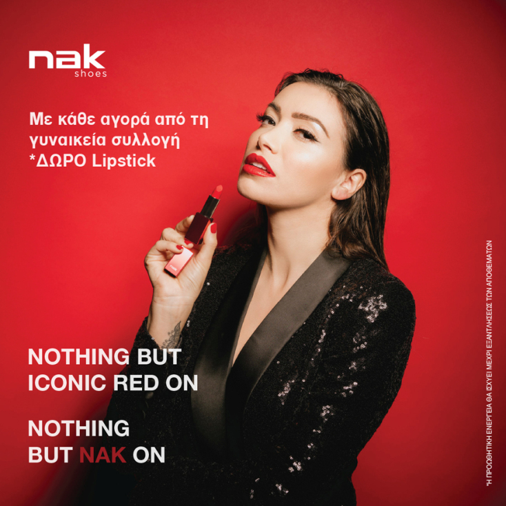 Mε κάθε αγορά από τη γυναικεία συλλογή Nak shoes δώρο lipstick με το iconic κόκκινο χρώμα της #NAKSHOES.