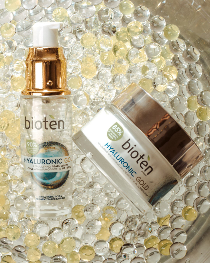 Κάντε δική σας τη σειρά bioten HYALURONIC GOLD, δώστε μια χρυσή λάμψη στην καθημερινότητά σας και αφήστε τους άλλους απλά να μαντεύουν την ηλικία σας!