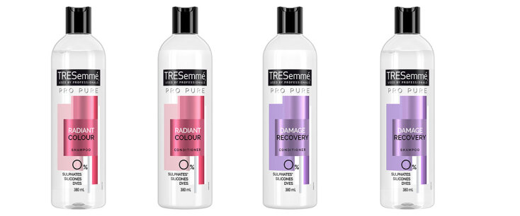 Η TRESemmé PRO PURE Damage Recovery απευθύνεται σε γυναίκες με ταλαιπωρημένα μαλλιά, τα οποία έχουν ανάγκη από βαθιά επανόρθωση. Η σειρά είναι εμπνευσμένη από την φύση, καθώς περιέχει 100% φυσικό λάδι καρύδας, ενώ τα προϊόντα της βοηθούν στην ενυδάτωση και θρέψη των μαλλιών χωρίς τη χρήση σιλικόνης. Η TRESemmé PRO PURE Radiant Colour απευθύνεται σε γυναίκες με βαμμένα μαλλιά οι οποίες θέλουν να τα περιποιούνται με συνθέσεις που εξασφαλίζουν την δύναμη και την απαλότητα της τρίχας ενώ «κλειδώνουν» τη λάμψη του χρώματος. Τα προϊόντα της συγκεκριμένης σειράς βοηθούν στην ενυδάτωση των βαμμένων μαλλιών, προσφέρουν λείανση και απαλότητα.