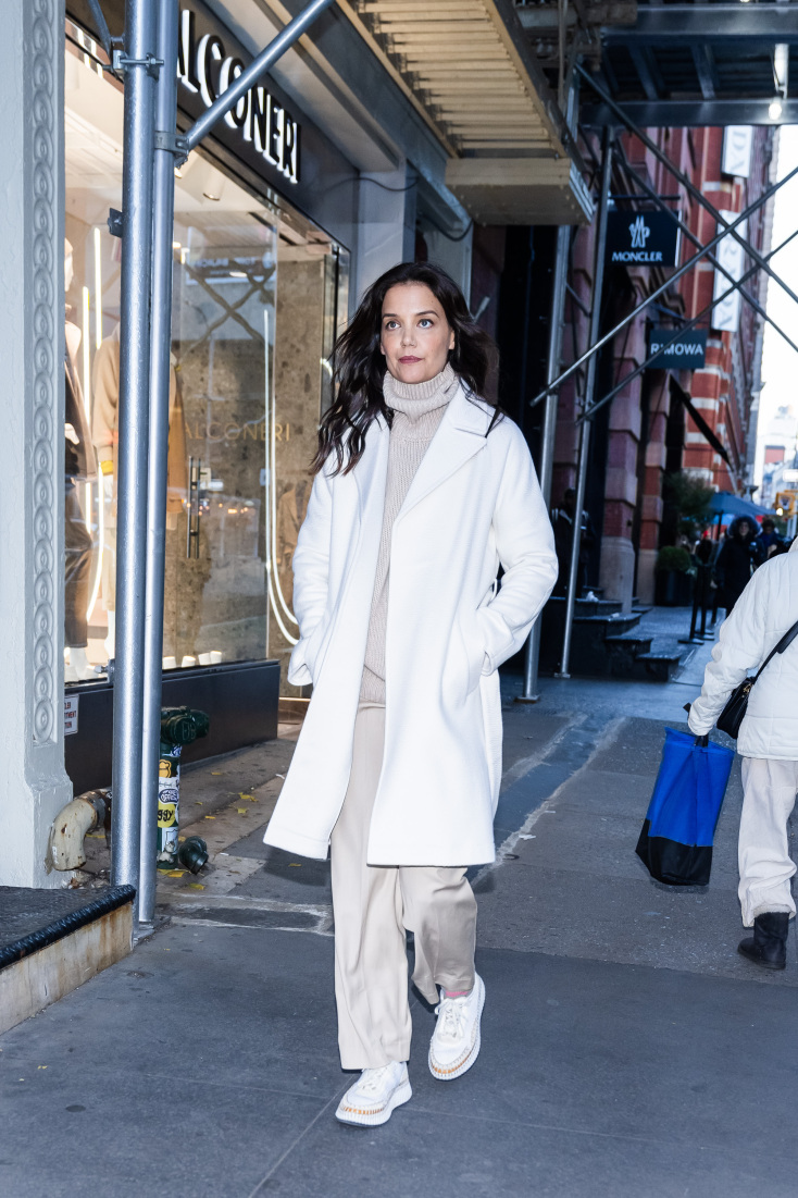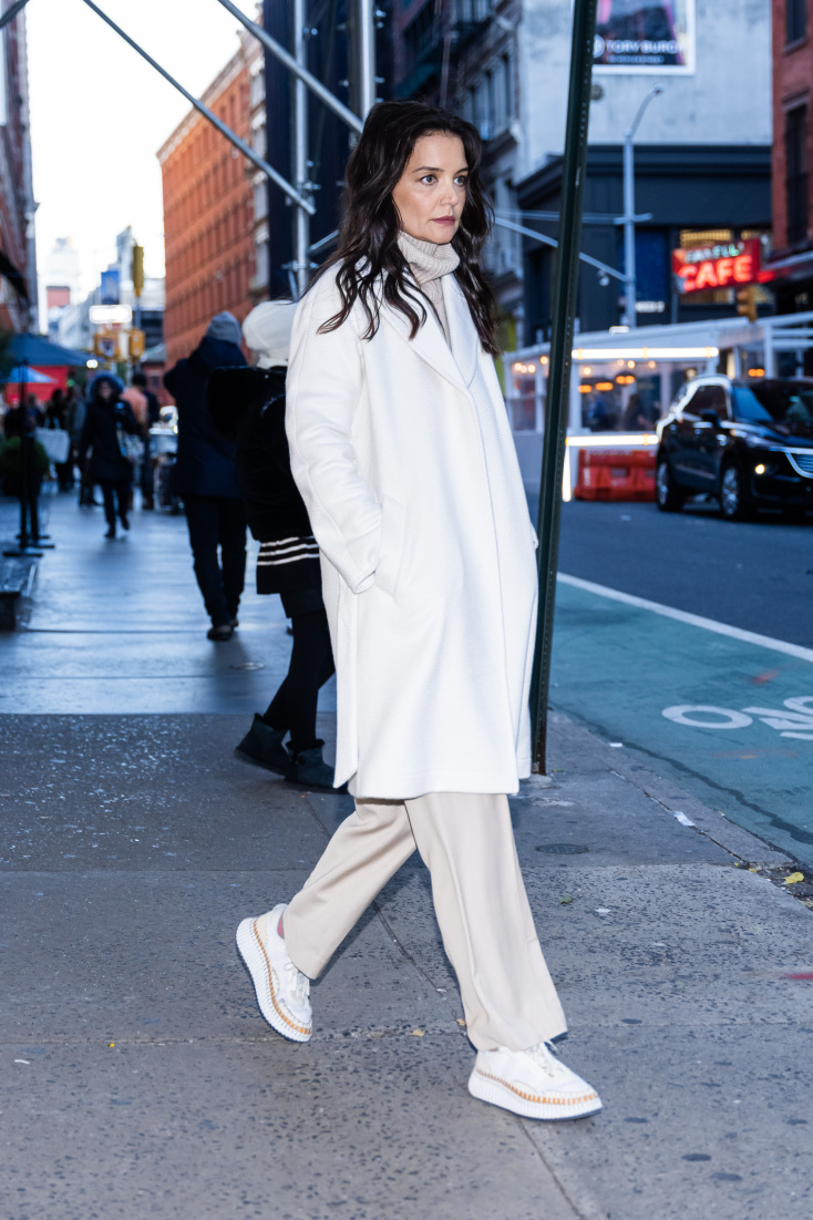 Πάντα στυλάτη, η ηθοποιός Katie Holmes στους δρόμους της Νέας Υόρκης με total look Falconeri από τη συλλογή Italian Luxury Casmere