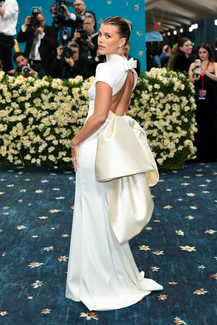- Sofia Richie Grainge: Το ecru ball gown που φόρεσε σχεδιάστηκε αποκλειστικά για εκείνη σε structured σιλουέτα, αναδεικνύοντας έναν υπερμεγέθη φιόγκο εμπνευσμένο από τις αναλογίες και το ύφος του σύγχρονου dandy. Προσδίδοντας μία κομψή ισορροπία δομής και απαλότητας, το ματ crepe μπούστο κατέληγε σε κρεμ φιόγκο με γυαλιστερή υφή, ενισχυμένο σε μέγεθος για δραματικό αποτέλεσμα. Αποτίοντας φόρο τιμής στην υψηλή ραπτική, η κλασική ζώνη αποδόθηκε με μοντέρνο τρόπο ως λεπτομέρεια στο ντεκολτέ και στην πλάτη , αποπνέοντας αισθησιασμό, λιτότητα και εκλεπτυσμένη κομψότητα.