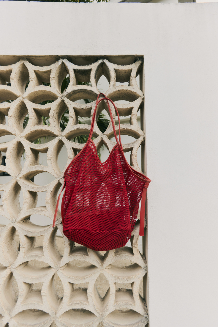Κόκκινη mesh τσάντα ώμου – η beach bag που δε μοιάζει με καμία άλλη (T01/2120Z, €32,99)