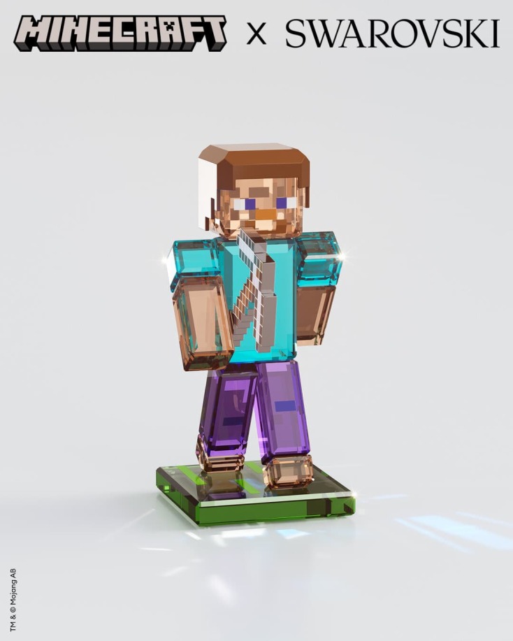 Η συλλογή περιλαμβάνει τέσσερις φιγούρες φτιαγμένες με εξαιρετική ακρίβεια από πλήρη κρύσταλλα, συνδυάζοντας την τέχνη του παιχνιδιού και την μοναδική αισθητική των μπλοκ του Minecraft με την απαράμιλλη τεχνογνωσία της Swarovski.