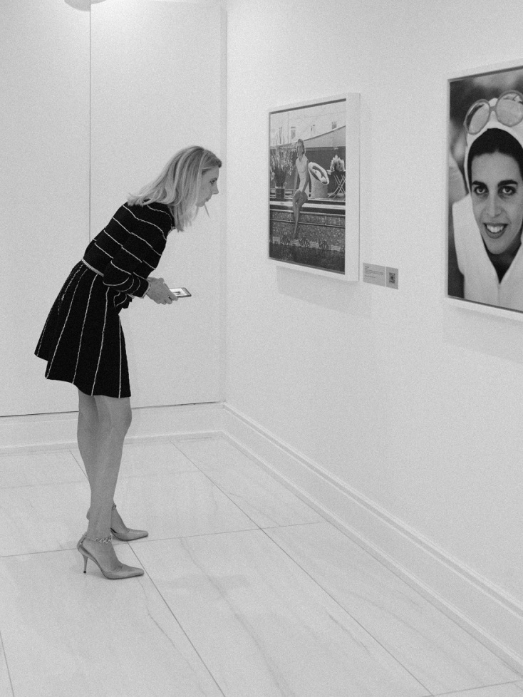 Όμως μας καλούν καθώς οι πόρτες της έκθεσης έχουν πια ανοίξει. Τα ανυπόμονα μάτια μας καταναλώνουν ιστορίες και πρωταγωνιστές-μύθους και το αναπόδραστο τέλος μιας εποχής που δεν θα ξαναγυρίσει. Οι φωτογραφίες του Aarons διαδέχονται η μία την άλλη: Ο Αριστοτέλης Ωνάσης το 1956 στη θαλαμηγό του μπροστά σ έναν πίνακα του Δομήνικου Θεοτοκόπουλου. Ο “Mr Acapulco” Teddy Stauffer πίνει το κοκτέιλ του στην πισίνα του Villa Vera Spa & Racquet Club τον Ιανουάριο του 1961. Ο Kirk Douglas καθώς ετοιμάζεται να κάνει θαλάσσιο σκι στα λαμπερά γαλάζια νερά της Αντίμπ στο Hotel du Cap-Eden-Roc. Η Carmen Alvarez παίζει τάβλι με τον Frank “Brandy” Brandsetter, έναν κατάσκοπο πληροφοριών των ΗΠΑ και ιδρυτή του Las Brisas Resort στο Ακαπούλκο του 1978. Κάθε φωτογραφία, τυπωμένη στο μέγιστο μέγεθος που θα μπορούσε, μια μοναδική ιστορία. Ο ίδιος ο φωτογράφος καθισμένος σε πολυθρόνα του Σαρίδη στην κορυφή του Φιλοπάππου. Η Χριστίνα Ωνάση στο πιο χαμογελαστό πορτραίτο της που έχω δει ποτέ. Στο σύμπαν του Slim Aarons είναι πάντα καλοκαίρι, ένα Riva σε περιμένει πάντα για μια αναπάντεχη βόλτα και τα μπικίνι έχουν πάντα χρώμα.