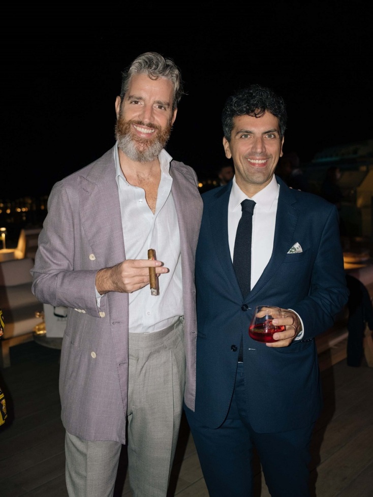 Λίγο αργότερα, θα γνωρίσω την Laury και τον Christophe Goineau, ο οποίος είναι creative director των ανδρικών αξεσουάρ Hermes, στον οποίο εργάζεται περισσότερα από 35 χρόνια. Θα μας πουν για την απόφασή τους να ζήσουν λίγο πιο έξω από το Παρίσι, για την παράσταση της Βανέσα Παραντί και την αγάπη τους για την Ελλάδα που τους οδήγησε στο να αγοράσουν γη στα Κύθηρα. O διάσημος make up artist και εκδότης του Visionaire, James Kaliardos, περιγράφει στον fashion editor της ελληνικής Vogue, Νικόλα Γεωργίου και τη δημοσιογράφο, Ελιάνα Χρυσικοπούλου, τη Νέα Υόρκη της καραντίνας και τους μιλά για το μιούζικαλ που ετοιμάζει. Είμαστε πια και πάλι στο μεγάλο μπαρ του Resort. Με την τελευταία πτήση έχει καταφθάσει η Γαλάτεια Λασκαράκη, διευθύντρια του Marie Claire και η παρέα είναι πλήρης. Ο οικοδεσπότης, Γιώργος Καλουτσάκης μας μιλά για την τετράχρονη ιστορία του Abaton Island, την επιλογή των φωτογραφιών του Slim Aarons και τη συνεργασία με το Getty Images, το πρακτορείο στο οποίο ανήκει το αρχείο του μεγάλου φωτογράφου. Ο ίδιος κατέχει Master και PhD στη Μηχανολογία από το πανεπιστήμιο Johns Hopkins στη Βαλτιμόρη με αντικείμενο τη ρομποτική κι έχει διατελέσει βοηθός καθηγητή και ερευνητής στο ίδιο πανεπιστήμιο. Στις ΗΠΑ γνώρισε το έργο, τον βίο και την πολιτεία του Slim Aarons κι έτσι όταν ήρθε η ώρα, απέκτησε τις φωτογραφίες του: «τα έργα του αποπνέουν τη νοσταλγία της λαμπερής ζωής των περασμένων δεκαετιών», θα μας πει.