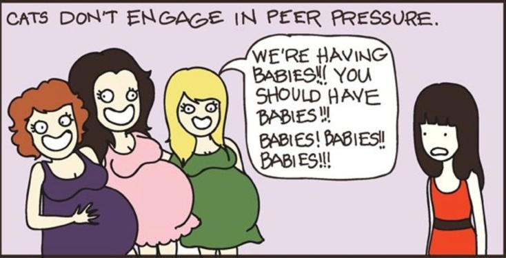 Και συνεχίζουμε με πιο επίκαιρα ζητήματα όπως, τι έχεις πετύχει μέχρι τώρα, ποια είναι τα επόμενα βήματα, πότε επιτέλους θα χάσεις πέντε κιλά. Κάπου εκεί θα προστεθούν και ξένες φωνές στην χορωδία, από ανήσυχους συγγενείς και φίλους, οι οποίοι συνήθως αναρωτιούνται πότε θα παντρευτείς και πότε θα κάνεις παιδιά. Όταν η απάντηση σε αυτό το τελευταίο είναι «δεν έχω σκοπό», οι αντιδράσεις ποικίλουν. Με πιο συχνή το «καλά, θα αλλάξεις γνώμη», το οποίο μονίμως ακούγεται με απόλυτη σιγουριά στον τόνο της φωνής και μία χροιά ανωτερότητας. Γιατί έτσι βρε παιδιά;