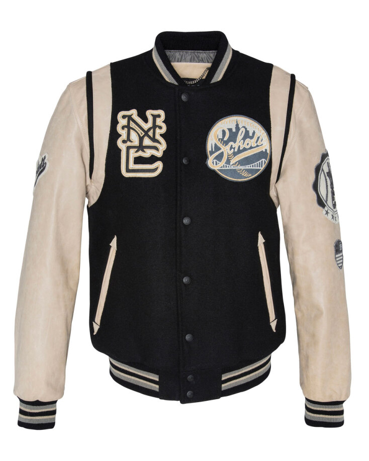 Μπουφάν με δερμάτινα μανίκια και patches €499\