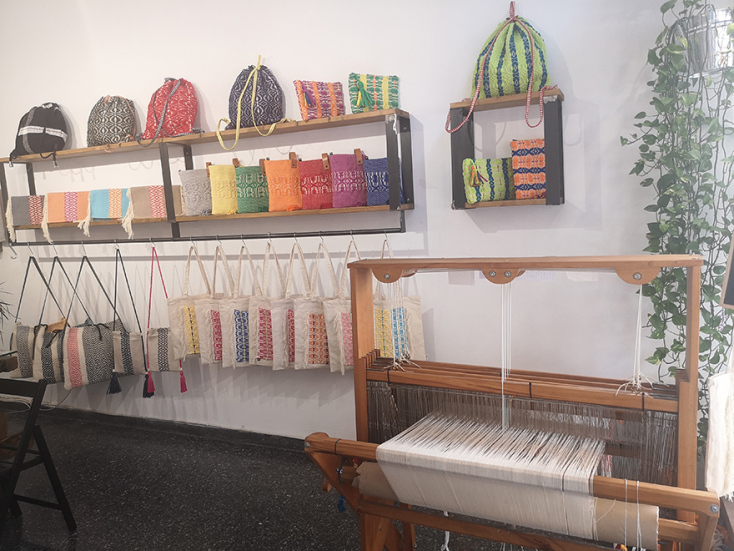 »» Όσοι μας βλέπουν να υφαίνουμε στο μαγαζί απορούν, εντυπωσιάζονται, συγκινούνται. Κυρίως όμως εκπλήσσονται. Είναι πολύ συχνή η εικόνα του περαστικού που κοιτά περπατώντας τη βιτρίνα και ξαφνικά σταματά και κάνει τρία βήματα πίσω για να βεβαιωθεί ότι είδε καλά και δεν τον γελούν τα μάτια του. Γενικά οι αντιδράσεις του κόσμου είναι κάτι παραπάνω από θετικές και ενθαρρυντικές. Μπαίνουν, ρωτούν, θέλουν να μάθουν και να καταλάβουν. Είναι πολύ όμορφο όλο αυτό. Γνωρίζοντας τον δημιουργό αυτού που βλέπουν, το εκτιμούν περισσότερο ενώ ταυτόχρονα έχουν τη χαρά της ανακάλυψης και την αίσθηση της συμμετοχής. Κάπως έτσι προέκυψαν και τα μαθήματα υφαντικής. Τα είχαμε μεν στο πρόγραμμα, αλλά τα ξεκινήσαμε πολύ νωρίτερα επειδή η ζήτηση ήταν μεγάλη, όχι μόνο από Έλληνες αλλά και από ξένους. Οπότε φέτος έχουμε προγραμματίσει και αγγλόφωνα “One day weaving Workshops” για τους ξένους επισκέπτες.