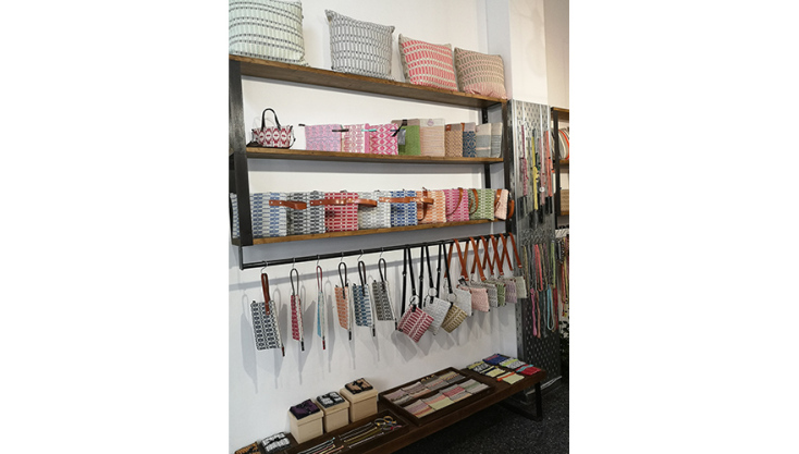 »» Η κατασκευή είναι 100% made in Greece, και πιο συγκεκριμένα... made in Koukaki, αφού εκεί, στο εργαστήριό μας, υφαίνουμε οι ίδιες όλα μας τα είδη. Σε αργαλειούς επίσης 100% ελληνικούς, κατασκευασμένους από ειδικευμένους ξυλουργούς. Τα υλικά μας δεν είναι αποκλειστικά Ελληνικά. Η νηματουργία στην Ελλάδα έχει περιοριστεί πολύ, οπότε κάποια από τα υλικά μας τα προμηθευόμαστε από το εξωτερικό. Όσον αφορά στον σχεδιασμό... εδώ τα ποσοστά δεν είναι μετρήσιμα. Ζούμε στην ελλάδα αλλά, όπως όλοι μας, έχουμε εικόνες και αναφορές από όλο τον κόσμο. Οι περισσότερες δημιουργίες μας πατούν πάνω σε παραδοσιακά ελληνικά υφαντικά μοτίβα. Τα wristlet bags, για παράδειγμα, έχουν τα ίδια «καραμελωτά» υφαντικά μοτίβα με τις υφαντές κουβέρτες του 1950, που υπήρχαν σε κάθε σπίτι. Κάποια σακίδια μας ακολουθούν το σχέδιο των παραδοσιακών νησιώτικων ντουρβάδων. Αλλά ως εκεί. Δεν μας ενδιαφέρει να αναπαράγουμε την παράδοση. Αντίθετα, την ταλαιπωρούμε. Μας εμπνέει το ελληνικό στυλ. Αλλά άλλο τόσο μας εμπνέει και το Σκανδιναβικό ή το Ιαπωνικό.