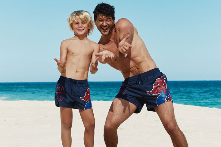 Μεσογειακά χρώματα που σε βάζουν στην καρδιά του καλοκαιριού υπάρχουν φυσικά και στην ανδρική συλλογή. Κίτρινο, ανοιχτό μπλε, μέντα, ροζ, κόκκινο, μπλε και μαύρο συνδυάζονται με ρίγες και καμουφλάζ prints, αλλά και πιο παιχνιδιάρικα σχέδια όπως λεμόνια, φλαμίνγκο και εξωτικά λουλούδια.