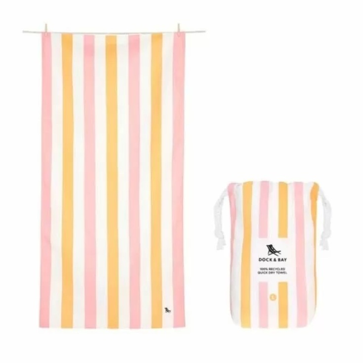 Μια άνετη και stylish πετσέτα για το καλοκαίρι είναι η Dock & Bay: Πετσέτα θαλάσσης Quickdry Cabana - Peach Sorbet. Οι καλαίσθητες χρωματιστές ρίγες χαρακτηρίζονται από την απλότητα και τη διαχρονικότητα του κλασικού! Είναι κατασκευασμένη από 100% ανακυκλώσιμα υλικά και ξεχωρίζει ως η πιο απορροφητική πετσέτα της αγοράς.