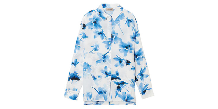 Μεταξωτό πουκάμισο με print λουλούδια της θάλασσας