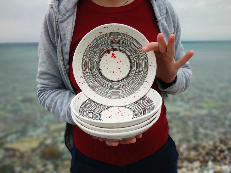 Oι δημιουργίες: Τα προϊόντα είναι 100% χειροποίητα, φτιαγμένα και ζωγραφισμένα στο χέρι, με οικολογικά υλικά, κατάλληλα για τρόφιμα και προορίζονται για καθημερινή χρήση αλλά και για διακόσμηση. Έχουμε κρατήσει πολλές παραδοσιακές φόρμες και μοτίβα, αλλά έχω προσθέσει και κάποια μοντέρνα σχέδια, γεωμετρικά μοτίβα και πιο μίνιμαλ στοιχεία. Πιάτα, σαλατιέρες, ποτήρια, μπόλ, κανάτες, ανθοδοχεία, βάζα και διάφορα διακοσμητικά είναι ορισμένα από τα αντικείμενα που δημιουργούμε. Τα μοτίβα είναι λουλούδια, ελιές, ασπρόμαυρα γεωμετρικά, νησιώτικα σχέδια όπως ψαράκια, πολύχρωμες γραμμές κ.ά. Παραδοσιακό κεραμικό της Σάμου και του εργαστηρίου μας είναι η κούπα του Πυθαγόρα ή αλλιώς «δίκαιη κούπα», που εφευρέθηκε από το μεγάλο αυτό φιλόσοφο-μαθηματικό και μέσω της λειτουργίας της μας διδάσκει την ισότητα, το μέτρο και τη δικαιοσύνη. Ως πηγή έμπνευσης λειτουργούν τα πάντα, η φύση, τα μουσεία, οι αρχαιολογικοί χώροι, η παράδοση, οι νέες τάσεις κ.ά.