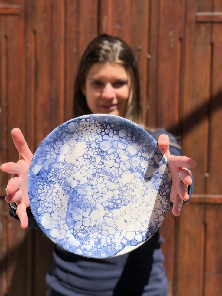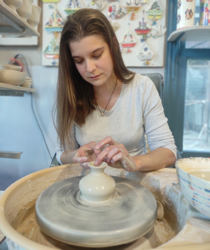 4ης γενιά αγγειοπλάστης με πτυχίο χημικού μηχανικού, δημιουργεί χρηστικά και διακοσμητικά αντικείμενο με τον παραδοσιακό τρόπο