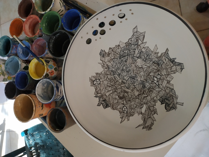 To εργαστήριο: Η κεραμική είναι μια απαιτητική τέχνη που θέλει χρόνο και σε μαθαίνει να έχεις υπομονή, να επιμένεις, να απογοητεύεσαι κάποιες φορές και στο τέλος να τα καταφέρνεις! Αφού φτιάξω τα αντικείμενα με πηλό στον τροχό, περιμένω ένα διάστημα ωρών-ημερών, ανάλογα με τις καιρικές συνθήκες και την εποχή, να στεγνώσουν και να διορθώσω διάφορες λεπτομέρειες ή να κάνω διάφορες παρεμβάσεις όπως τοποθέτηση χερουλιού σε κούπα του καφέ. Στη συνέχεια ακολουθεί το πρώτο ψήσιμο (μπισκουί), μετά η ζωγραφική και το υάλωμα και τέλος το δεύτερο ψήσιμο στους 1030 οC, για 12-14 ώρες. Από τη στιγμή που θα πιάσω ένα κομμάτι πηλού στα χέρια μου μέχρι το τελικό αντικείμενο- το βάζο ας πούμε, μεσολαβούν περίπου δέκα μέρες και 9-10 διαφορετικά στάδια επεξεργασίας. Αυτό που αγαπώ στη δουλειά μου είναι η φύση της, είναι μια αργή διαδικασία όπου από ένα κομμάτιπηλού, ένα «ταπεινό» υλικό (χώμα και νερό),μετά από έντονη ενασχόληση και τις κατάλληλες συνθήκες (αέρας και φωτιά), το μετατρέπεις σε ένα άρτιο χειροπιαστό αντικείμενο. Το εργαστήριο βρίσκεται στον ίδιο τόπο με το πρώτο εργαστήριο του 1922 και στο πίσω μέρος του διασώζονται τα πετρόκτιστα καμίνια του προπαππού μου που λειτουργούσαν για πολλά χρόνια με ξύλα, πριν χρησιμοποιηθεί το ηλεκτρικό ρεύμα για τους σύγχρονους φούρνους που έχουμε τώρα.