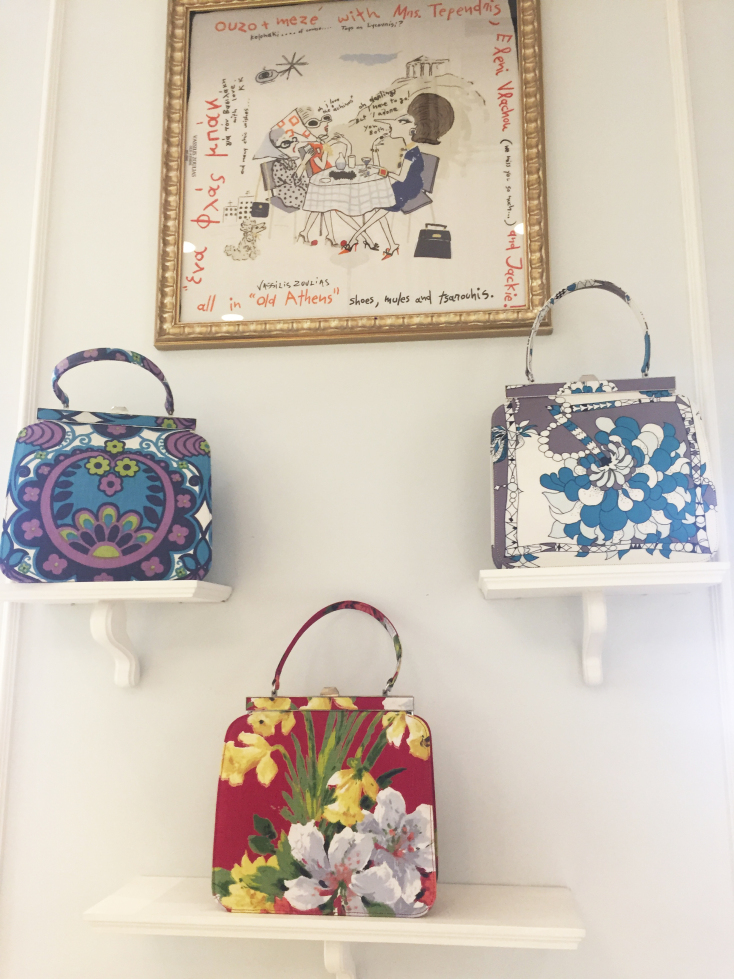 Κατεβαίνοντας τη μικρή στενή γκρι σκάλα, φτάνεις στον κάτω όροφο και εκεί σε περιμένουν, οι θησαυροί που τώρα μπορείς να αποκτήσεις χωρίς δεύτερη σκέψη. Υπέροχα φουστάνια από χρωματιστούς ταφτάδες και μεταξωτά, παπούτσια δερμάτινα και υφασμάτινα, γόβες, φίνα πέδιλα, slingbacks, καρό, πουά, σε όποιο χρώμα και ύψος τα θέλεις.