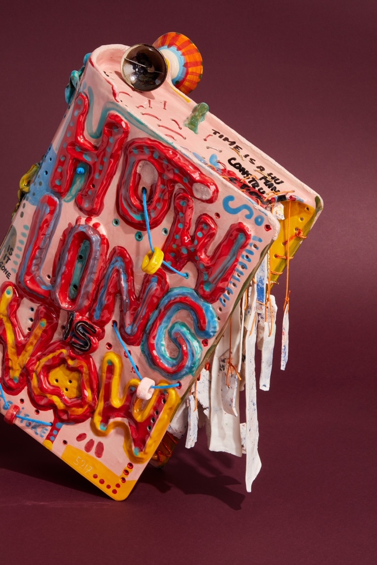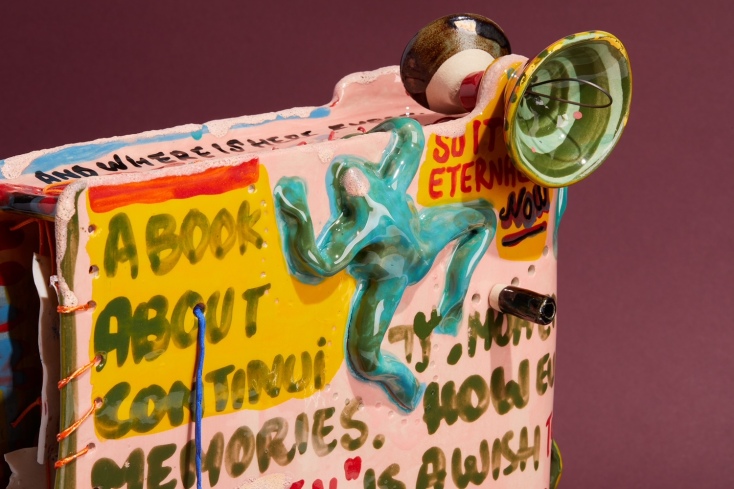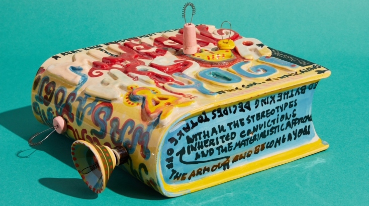 Έχετε και εσείς κάποιο «φετίχ» με τις βιτρίνες; Εγώ από όταν θυμάμαι τον εαυτό μου, σταματάω για δευτερόλεπτα στις βιτρίνες της πόλης, ρίχνω γρήγορες ματιές και συνεχίζω κάνοντας υπολογισμούς με το τι μου βγαίνει να αγοράσω και τι όχι. Αυτή τη φορά, η βιτρίνα στη γκαλερί Sealed Earth στην Ερεχθείου με κράτησε περισσότερο. Τέσσερα κεραμικά αντικείμενα -που έμοιαζαν με βιβλία- γεμάτα χρώματα και ανάγλυφες λέξεις ήταν αυτά που μου τράβηξαν την προσοχή. Δέσποζαν στο παράθυρο και με τον τρόπο τους σε καλούσαν να τα ανοίξεις και να μάθεις τι ιστορίες μπορεί να έχουν «γραμμένες». Μπήκα μέσα, ρώτησα και έμαθα ότι είναι έργα της νέας συλλογής "The Solid Book” της γλύπτριας και κεραμίστριας, Λεώνης Γιαγδζόγλου. Θέλησα να μάθω περισσότερα. Έτσι και έγινε.