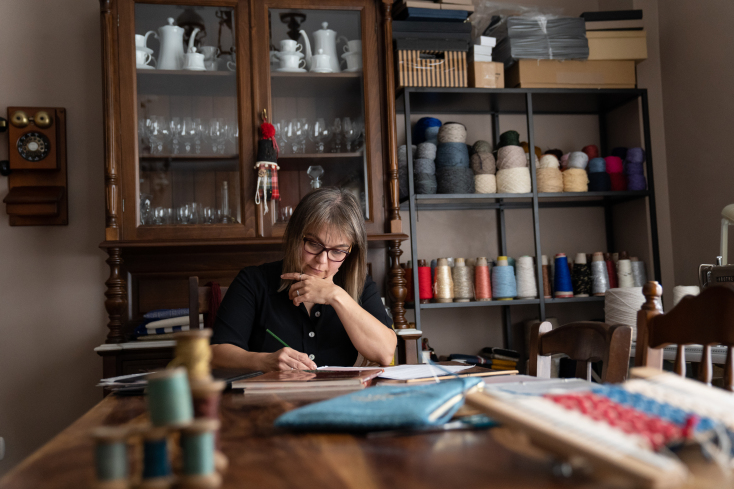 «Από μικρή ήρθα σε επαφή με την τέχνη και τη δημιουργία – η γιαγιά μου ήταν μια εξαιρετική υφάντρα στην περιοχή της Καλαμπάκας. Θυμάμαι να περνάω ώρες δίπλα της, να παρατηρώ τα χέρια της να κινούνται με μαεστρία στον αργαλειό. Ένας μικρός αργαλειός –χριστουγεννιάτικο δώρο που προσφέραμε στα κορίτσια μας το 2012, σχεδιασμένος για παιχνίδι– έγινε η αφορμή για να ξεκινήσει το δικό μας ταξίδι στην υφαντική τέχνη και την επιχειρηματικότητα. Ήταν η πηγή έμπνευσης που μας οδήγησε να δημιουργούμε μικρά, όμορφα υφαντά κομμάτια, που αργότερα μεταμορφώναμε σε πρακτικά, μοναδικά αντικείμενα: πορτοφολάκια, κασετίνες και τσαντάκια».