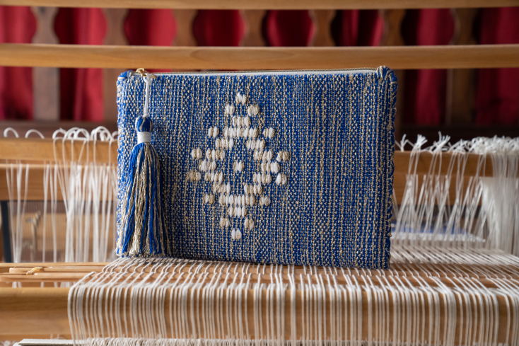 «Το πρώτο βήμα είναι η σύλληψη της ιδέας και η αποτύπωση του οράματός μας στο χαρτί. Ακολουθεί η προσεκτική επιλογή των χρωμάτων και των νημάτων, ίσως το πιο δημιουργικό και ευχάριστο μέρος της διαδικασίας, καθώς κάθε χρώμα και νήμα προσθέτει νέα διάσταση στο έργο. Στη συνέχεια περνάμε στη φάση των προσχεδίων, όπου εξετάζουμε διάφορες εκδοχές μέχρι να καταλήξουμε στο τελικό αποτέλεσμα που μας ικανοποιεί απόλυτα. Η διαδικασία της ύφανσης είναι μια τέχνη που απαιτεί υπομονή και αφοσίωση, καθώς κάθε βήμα είναι χρονοβόρο, με προσοχή στη λεπτομέρεια. Όταν το υφαντό ολοκληρωθεί, προχωράμε στο επόμενο στάδιο: την επεξεργασία του με το ράψιμο στη μηχανή, δίνοντάς του την αρχική μορφή της τσάντας. Για το τελικό στάδιο, όπου δημιουργούμε έναν γυναικείο φάκελο, το ράψιμο στο χέρι είναι που προσδίδει στο προϊόν τον μοναδικό του χαρακτήρα. Κάθε ραφή, κάθε κίνηση του χεριού, είναι μια μικρή έκφραση τέχνης, μια προσωπική υπογραφή σε κάθε κομμάτι. Από τις πιο κλασικές και διαχρονικές επιλογές μέχρι τις πιο μοντέρνες και τολμηρές, προσφέρουμε αμέτρητους συνδυασμούς, που αντανακλούν το προσωπικό στιλ και την αισθητική κάθε γυναίκας. Ωστόσο, το βασικό προϊόν που ξεχωρίζει και αποτελεί την καρδιά της παραγωγής μας είναι ο γυναικείος φάκελος – ένα κομψό και απαραίτητο αξεσουάρ, που συνδυάζει, με απόλυτη αρμονία, την πρακτικότητα και την αισθητική, ενώ για τους τουρίστες οι αποχρώσεις του μπλε και του γαλάζιου έχουν ξεχωριστή θέση στις προτιμήσεις τους, παραπέμποντας στο μπλε του Αιγαίου και στον ουρανό των ελληνικών καλοκαιριών».