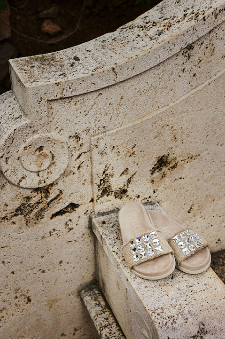 Για να τιμήσει τα 100 χρόνια δημιουργίας αλλά και τα 25 χρόνια συνεργασίας με τη Swarovski, ο Οίκος παρουσιάζει τη συλλογή Essentia — μια περιορισμένη capsule σειρά που ενσαρκώνει την ουσία του brand. Εκλεπτυσμένα σανδάλια και πέδιλα, σχεδιασμένα με φειδώ και αρχιτεκτονική ακρίβεια, κατασκευάζονται από φυτικά επεξεργασμένο δέρμα vachetta και φίνα μεταξωτά σατέν υφάσματα, διακοσμημένα με λεπτομέρειες από φίλντισι και αυθεντικά κρύσταλλα Swarovski. Κάθε κομμάτι αφηγείται μια ιστορία αισθητικής συνείδησης, μινιμαλιστικής πολυτέλειας και διαχρονικής φινέτσας.Η καμπάνια, φωτογραφημένη από τον Daniel Riera στους ονειρικούς Κήπους L’Albarda, αντλεί έμπνευση από το φως και τη φύση της Μεσογείου — όπως και ο ίδιος ο Οίκος.