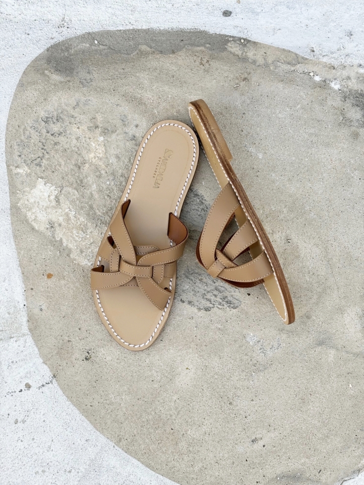 Κάθε ζευγάρι Sandalia Cyclades κατασκευάζεται στο χέρι, με δέρματα κορυφαίας ποιότητας – τις ίδιες πρώτες ύλες που χρησιμοποιούνται στην υψηλή υποδηματοποιία. Το κάθε σχέδιο είναι πλήρως φοδραρισμένο, προσφέροντας άνεση και ανθεκτικότητα που διαρκεί, καλοκαίρι με το καλοκαίρι. Είναι σανδάλια που αποκτούν χαρακτήρα με τη χρήση, σαν να γίνονται πιο «δικά σου» όσο τα φοράς.